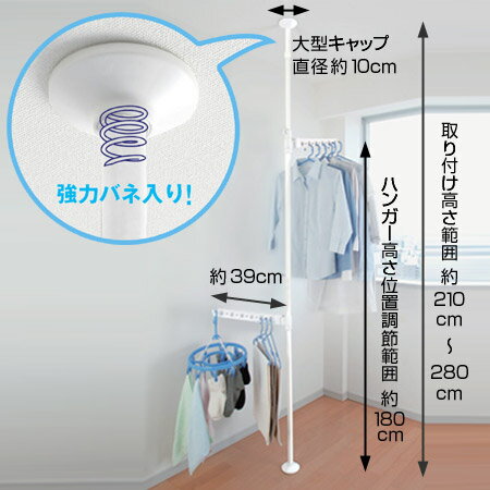 商品区分物干しカテゴリから探す●バネ圧着式なのでワンタッチで取り付けでき、取り外しや移動も簡単!工具は不要です!●直径10センチの大型キャップ採用でしかも2段バネ内蔵タイプなので突ぱり安定性抜群です。