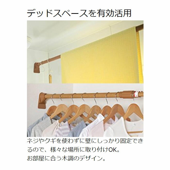 ※ ねじや釘を使わずに壁にしっかりと固定できる伸縮棒!お部屋に合う木調のデザインです。