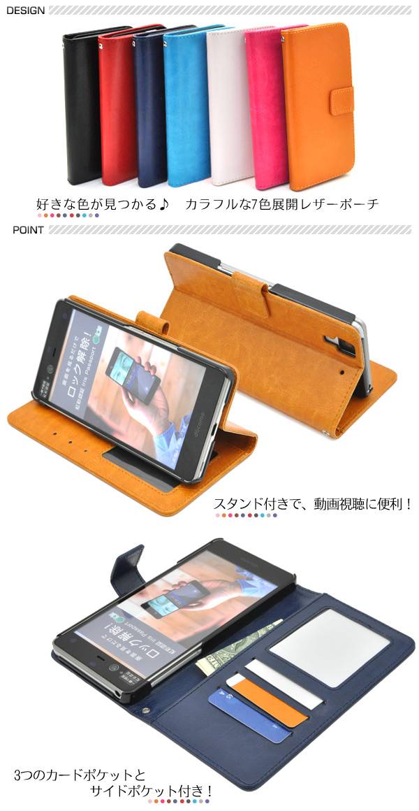 カラフルな7色展開!arrows NX F-01J用カラーレザーケースポーチ カラフルな7色展開のカラーレザースタンドケースポーチ。